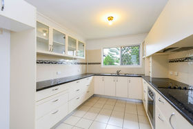 The kitchen is modern and fully separate, comprising of a double sink, electric under-bench oven and cooktop with range hood, plenty of bench top space, large fridge space and stunning glass door feature cupboards too!
