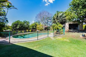 Stunning in-ground swimming pool, viewed from the covered upper decked balcony to relax and enjoy nature's precious gifts! The rear garden is an absolute delight! Plenty of room for everyone here, plus a 5.4kw Solar Power System, what more could you want?