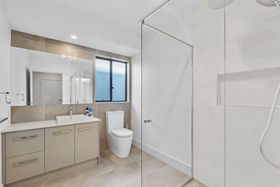 At the heart of the home, the generous contemporary kitchen showcases a sophisticated palette of winter white and warm almond tones, complemented by stunning stone benchtops. A large breakfast bar, quality stainless steel appliances and clever layout make it as practical as it is stylish. The adjoining butlers pantry/laundry and private drying court complete a highly functional work zone while maintaining a clean and cohesive design.