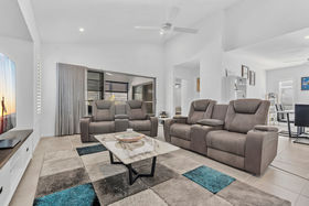 Light filled open plan living flows seamlessly to an expansive tiled rear terrace, creating a true indoor and outdoor connection. Fully enclosed with premium automated blinds, this impressive entertaining zone provides year round comfort and privacy, making it the perfect setting for relaxed mornings or hosting family and friends.