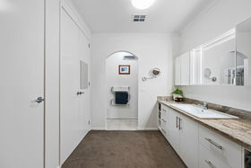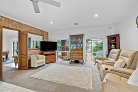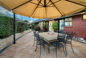 THIS IS EXECUTIVE LIVING This handsome Tudor-style brick beauty has been turning heads along Kennington's main thoroughfare for decades. Its commanding presence exudes quality, from the formal, leafy landscaping to the grand proportions and garaging for four vehicles. A wide, high entrance porch sets the scene for what's inside - 2 sprawling living areas, three beautiful bedrooms and two large bathrooms. The master is reminiscent of a hotel suite, with its walk-through dressing room/ensuite. The family bathroom boasts a full spa bath. Brick feature walls, custom-made Roman blinds, ducted reverse cycle split heating and cooling and ceiling fans throughout bring substance, comfort and style. THIS IS THE HEART OF THE VILLAGE Walk to Kennington's premier shopping precincts, to the reservoir and parkland. The Brennan Park Pool and loved local primary schools are also close by this convenient address. Public transport travels past the front door, and Bendigo itself is less than 2km away. Despite being on vibrant Condon Street, the home enjoys a sense of peace and privacy, being well set back from the road behind its beautiful garden of conifers, roses, silver birch and more. ADDITIONAL INFORMATION • Designer kitchen with glass splashback, stainless steel appliances, pot drawers & double pantry. • Two spacious open-plan living areas with views front and back. • French doors to rear paved entertainment space, surrounded by gardens. • Low-maintenance landscape thanks to automatic underground sprinkler system. • Banks of solar panels ensure energy efficiency.
