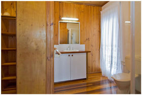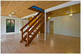 An attractive feature of this property is the use of hardwood polished floorboards on the upper level and the solid wood staircase leading downstairs. The upper level timber verandah utilizes the width of the property so that you can enjoy the panoramic views from a north easterly aspect.
