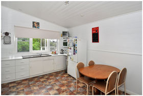 A step down from the kitchen reveals the spacious laundry, which is central to the toilet and neat bathroom and third small bedroom/sleepout.