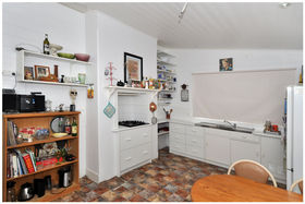 The end of the passage flows to the character, revamped and again, timber-lined country-style kitchen and meals area. Features include a modern gas upright stove, pot drawers, microwave shelf and ample cupboards and shelving space.
